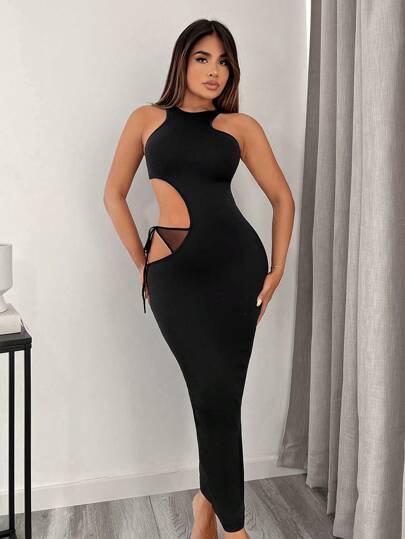 SHEIN SXY 腰部鏤空緊身連衣裙 - 黑色 - 查看 1