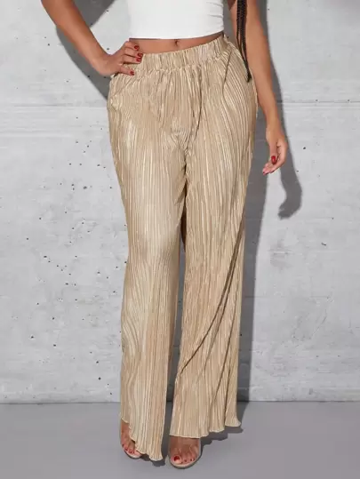 SHEIN SXY 高腰闊腿褲 - 卡其色 - 查看 1