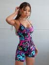 SHEIN ICON 女士新年假日纯色性感露背高领连体紧身衣