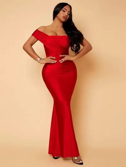 SHEIN SXY 一字肩高開叉魚尾洋裝