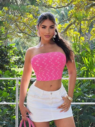SHEIN SXY 女士简约修身抹胸,日常休闲装,女士抹胸,抹胸,抹胸,女士度假装,女士夏季装,夏季服装,海滩度假装,邮轮装 - 玫紅色 - 查看 1