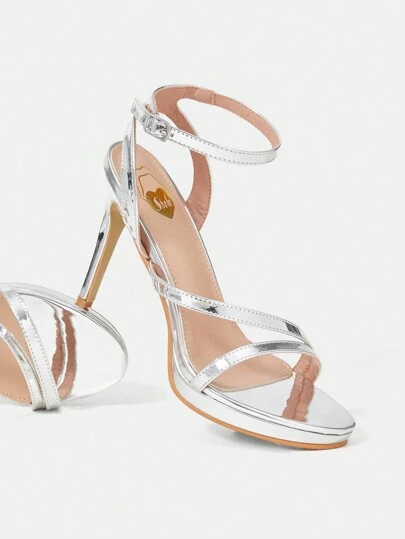 女士高跟涼鞋 - 銀色 - 查看 1