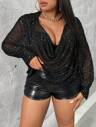 Slaydiva 大码休闲简约闪光图案印花长袖圆领紧身连衣裙,适合秋冬派对