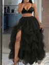 Slaydiva 2024 新款优雅性感高腰夸张泡泡袖派对裙,高开叉欧根纱芭蕾长裙,A 字型分层网眼高腰开叉长公主裙,加大码