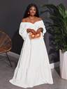 Slaydiva 大码优雅、通勤、度假、日常宽松纯白色短袖缺口领 A 字形及膝连衣裙,适合女士,春夏季