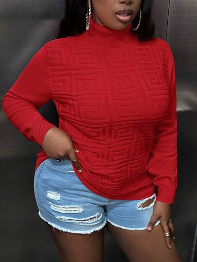 Slaydiva 女士加大碼高領毛衣 - 紅色 - 查看 1