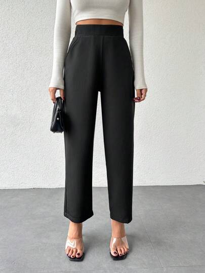SHEIN Cottnline 素色斜口袋長褲 - 黑色 - 查看 1