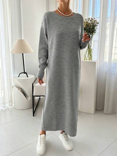 RueChic 宝石与珍珠超大长款套头连衣裙 - 灰色 - 查看 1