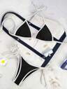 Swim Mod 夏季沙滩女士纯色比基尼套装,饰有滚边细节 - 挂脖三角胸罩和侧系带比基尼下装