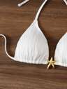 Swim Mod 两件套,度假纯色海星装饰三角形上衣和性感丁字裤比基尼女士泳衣