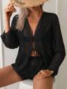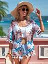 熱帶圖案褶邊連體泳衣附沙灘裙