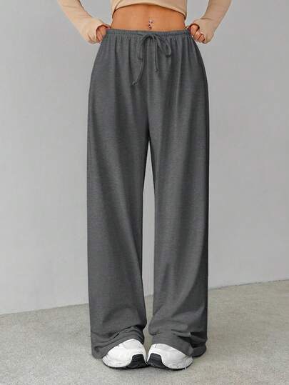 SHEIN Tall 柔软白色针织家居宽松裤,宽松裤 - 深灰色 - 查看 1