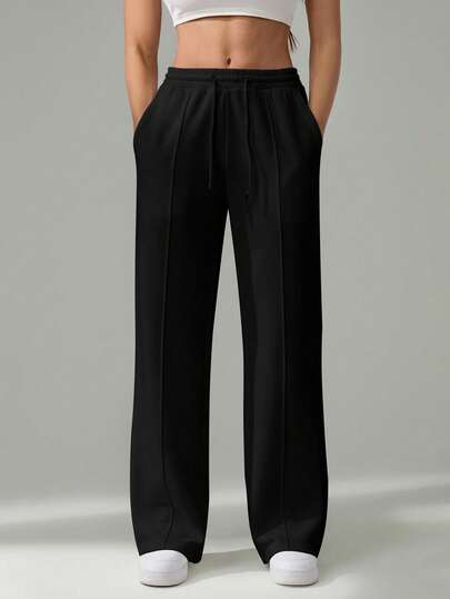 SHEIN Tall 女士秋季鹅卵石纹直筒运动裤 - 黑色 - 查看 1