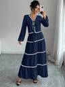 SHEIN Tall 女士杏色度假装闪亮灯笼袖宽松系带褶饰多层荷叶边下摆迷你浪漫雪纺连衣裙女士生日装,适合日常穿着