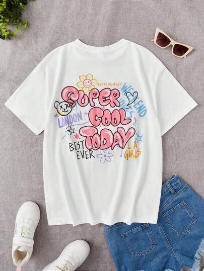 SHEIN 青少年女孩標語圖案T恤