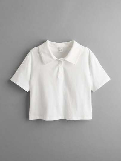 SHEIN 青少年女孩素色POLO領T恤 - 白色 - 查看 1