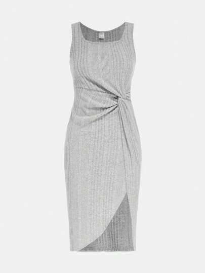 SHEIN 青少年女孩前扭結圍裹下擺背心連衣裙 - 淺灰色 - 查看 1