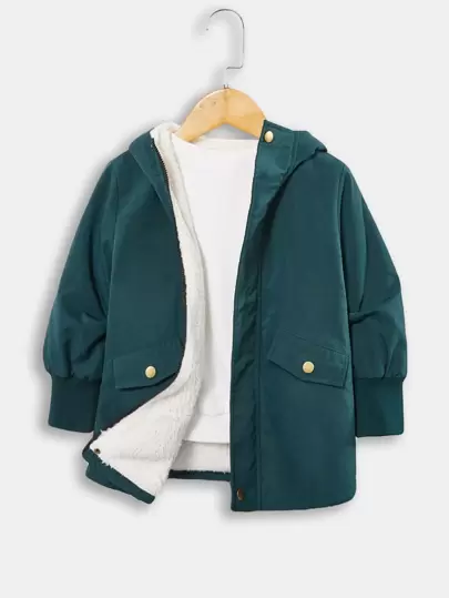 SHEIN 小男童翻蓋細節連帽外套 - 墨綠色 - 查看 1