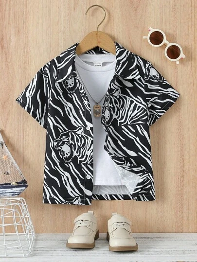 SHEIN 小男童斑馬紋襯衫不帶T恤 - 黑與白 - 查看 1