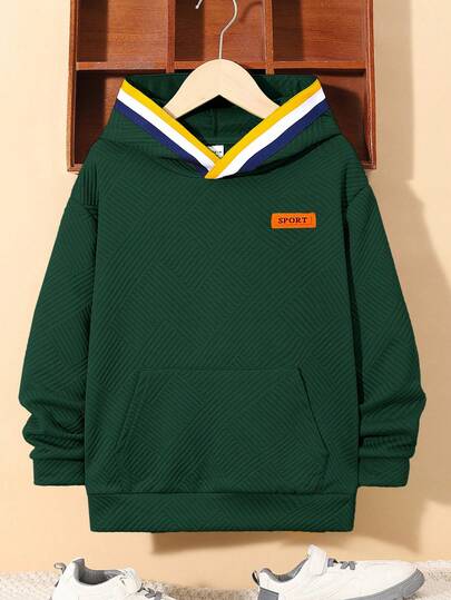 SHEIN 男童拼接刺绣贴片长袖卫衣,秋冬款 - 墨綠色 - 查看 1