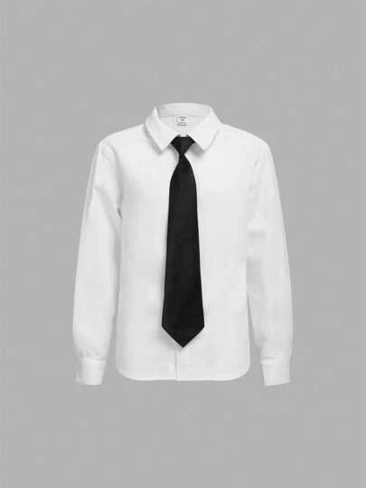SHEIN Leap Crew 男大童素色前排扣襯衫帶系帶 - 白色 - 查看 1