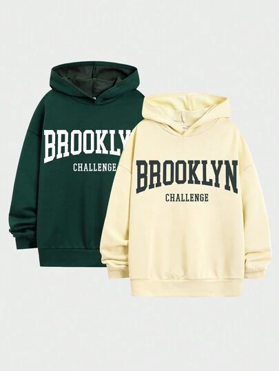 SHEIN Tween男孩休閒帽衫,有字母印花設計,兩種顏色可選,單件或成對販售 - 彩色 - 查看 1