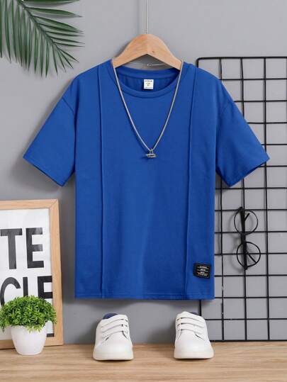 SHEIN 青少年男孩舒適純色休閒t恤 - 寶藍色 - 查看 1