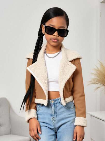 SHEIN 青少年女孩休闲宽松圆领长袖夹克 - 鏽棕色 - 查看 1