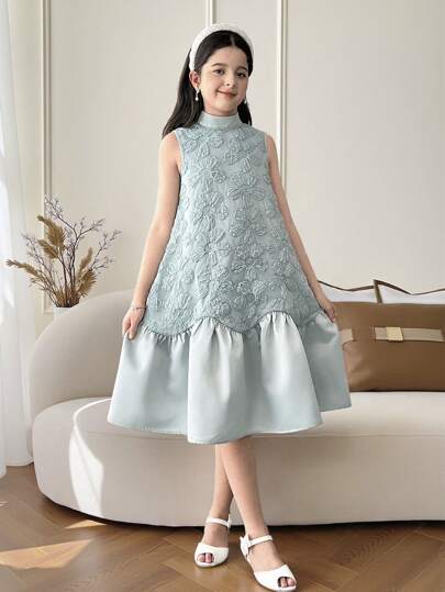SHEIN 青少年女孩优雅圆领无袖A字连衣裙 - 薄荷綠 - 查看 6
