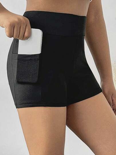 SHEIN 青少年女孩简约时尚休闲夏季紧身裤 - 黑色 - 查看 5