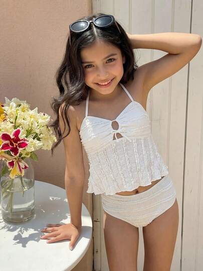 Review: So cute! My daughter is 7 and we bought the 9 and it juuuust fits. So, size up to be safe. The bra part is a bit padded which is awkward.
