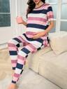 Moonlight & Mama 浪漫圆领蕾丝拼布花卉仿丝孕妇睡袍