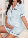 Moonlight & Mama 浪漫圆领蕾丝拼布花卉仿丝孕妇睡袍