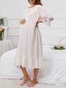 Moonlight & Mama 宫廷风波点图案喇叭袖宽松舒适孕妇睡裙,秋冬款