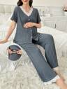 Moonlight & Mama 孕妇碎花浪漫荷叶边开襟睡衣套装