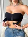 SHEIN 大码蕾丝拼接纯色细肩带文胸,黑色