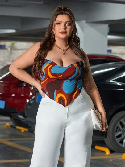 SHEIN Unity 大碼堆堆領圖案印花吊帶上衣 - 彩色 - 查看 1