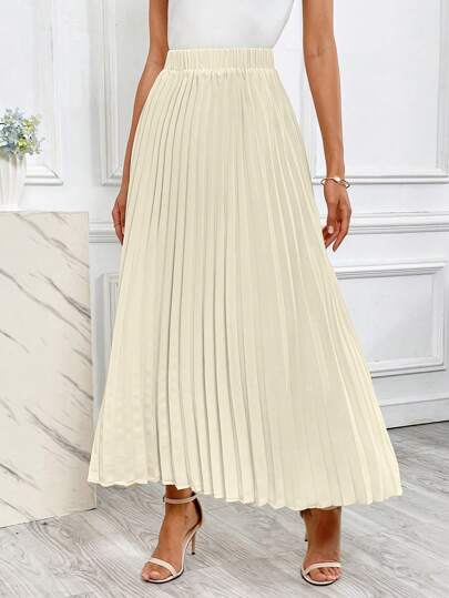 SHEIN Privé 素色百褶半身裙 - 卡其色 - 查看 1