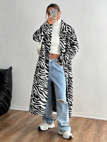 SHEIN Unity 女士秋冬时尚斑马纹夹克 - 黑色 - 查看 1