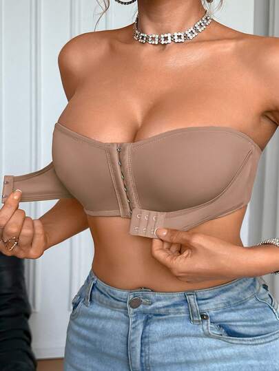 SHEIN 升级版前扣式加垫聚拢文胸,易于穿戴 - 摩卡棕 - 查看 1