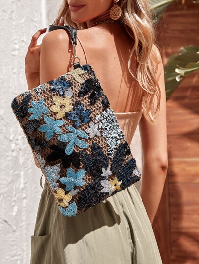 SHEIN VCAY 不对称图案编织草编包 - 藍色 - 查看 1