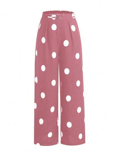 SHEIN Holidaya 大碼波點圖案闊腿褲 - 粉色 - 查看 1
