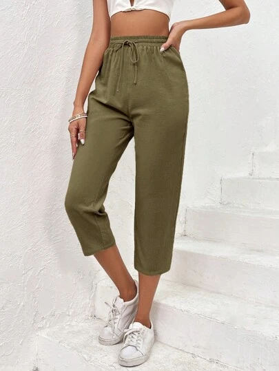 SHEIN VCAY 素色腰部抽繩七分褲