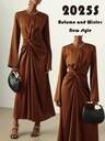 Vesra 女式纯色二合一设计长袖宽松直筒休闲连衣裙