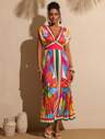 Vesra 女式复古印花露背蛋糕中长连衣裙