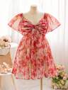 Soleia 大码波西米亚风碎花印花前结连体衣,适合夏季