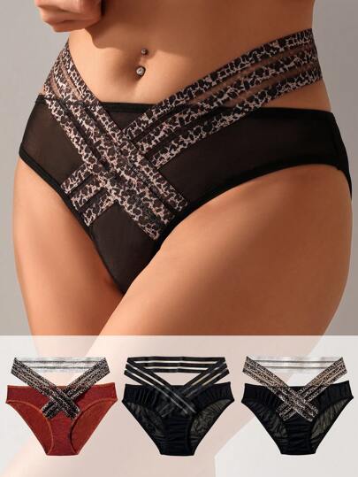 SHEIN 女士豹纹交叉三角裤 - 彩色 - 查看 5