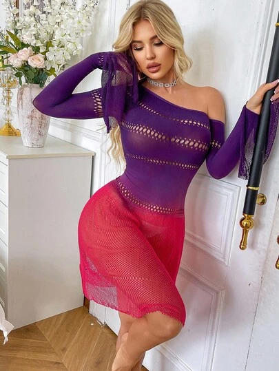 女士性感内衣裙,渐变紫色长袖连衣裙,性感诱人的高端晚礼服