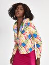 Frida Kahlo X SHEIN X Designer Oxana 女式短款飘逸无袖上衣印花喇叭形圆领纽扣衬衫