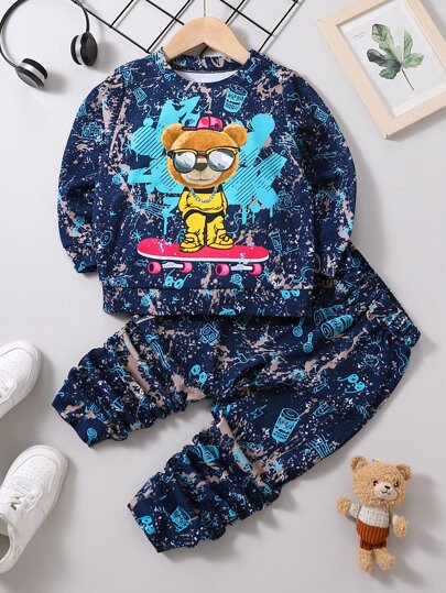SHEIN 男孩漫畫圖形套頭衫&運動長褲 - 藏蓝色 - 查看 1